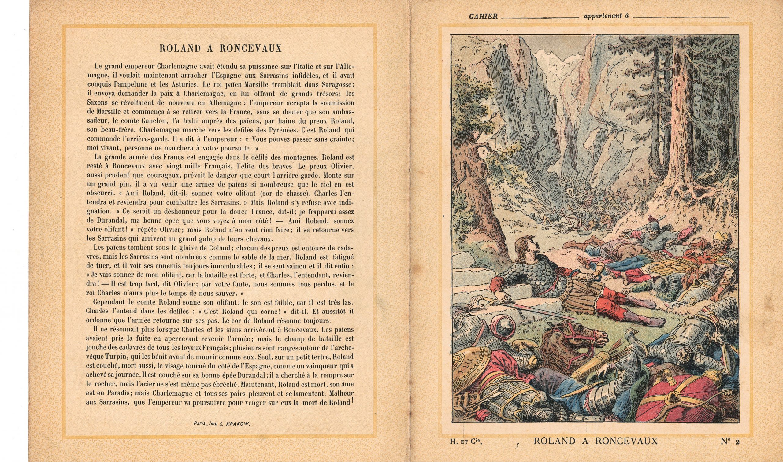 Petit Protège Cahier Scolaire Histoire de France – XIX illustration – Roland a Roncevaux