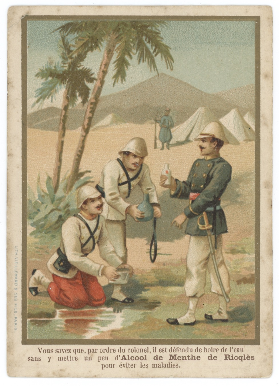 1 chromos imagerie Ricqles – Armée Française – Uniforme – Second Empire – Historique – Soldat – Infanterie – Sahara – Infanterie de Marine
