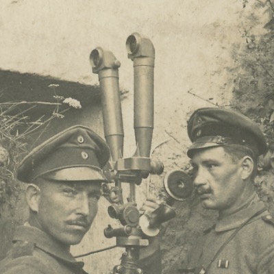 Carte Ancienne Photographie – Guerre 14/18 – Armée Allemande – Infanterie – Prusse / Alsaciens – Conscription – Casque à Pointe – Artillerie – Observation