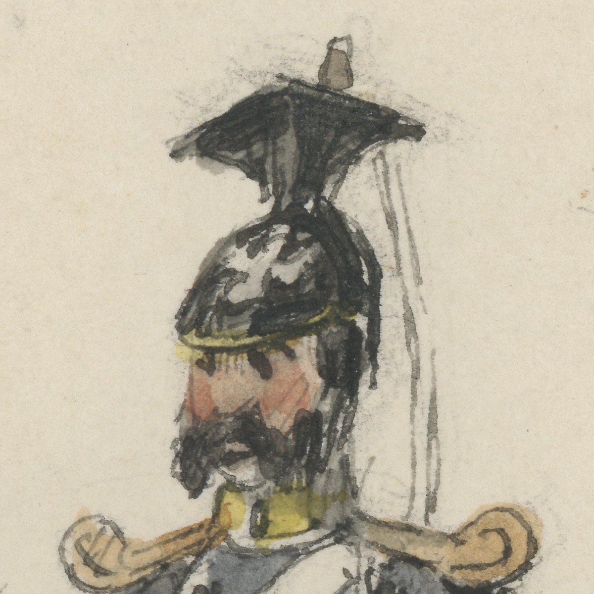 Dessin étude crayon rehaussé – Soldat Prussiens – Second Empire – Uniforme – Aquarelle Originale – Guerre 1870 – Troupes Occupation
