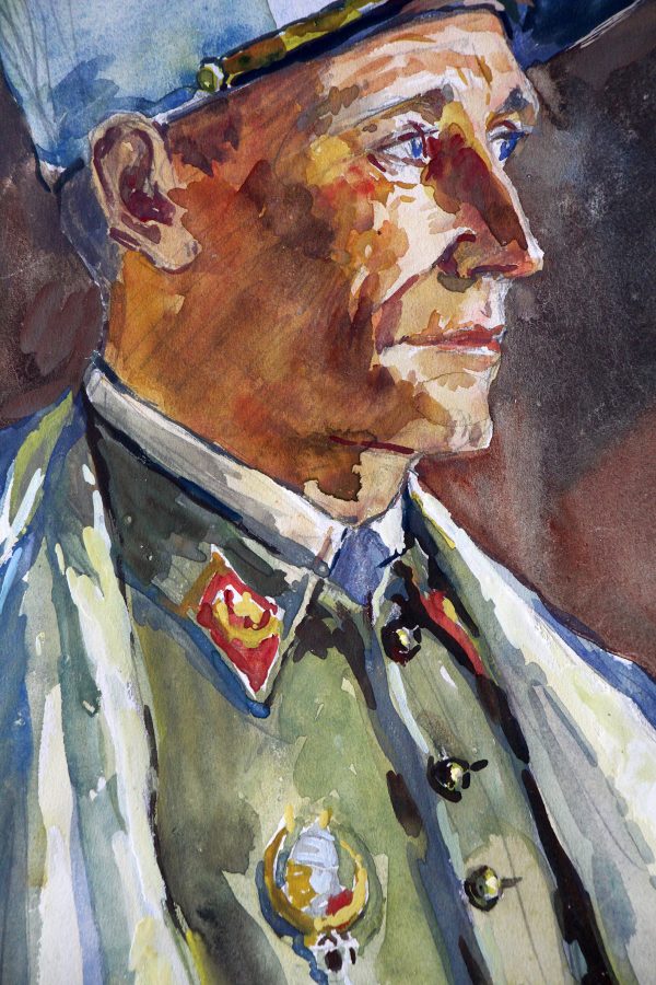 Grand Gouache Aquarelle – Auguste Cammissar – Drôle de Guerre – Soldat 1940 – Uniforme – Compagnie saharienne officier sous lieutenant