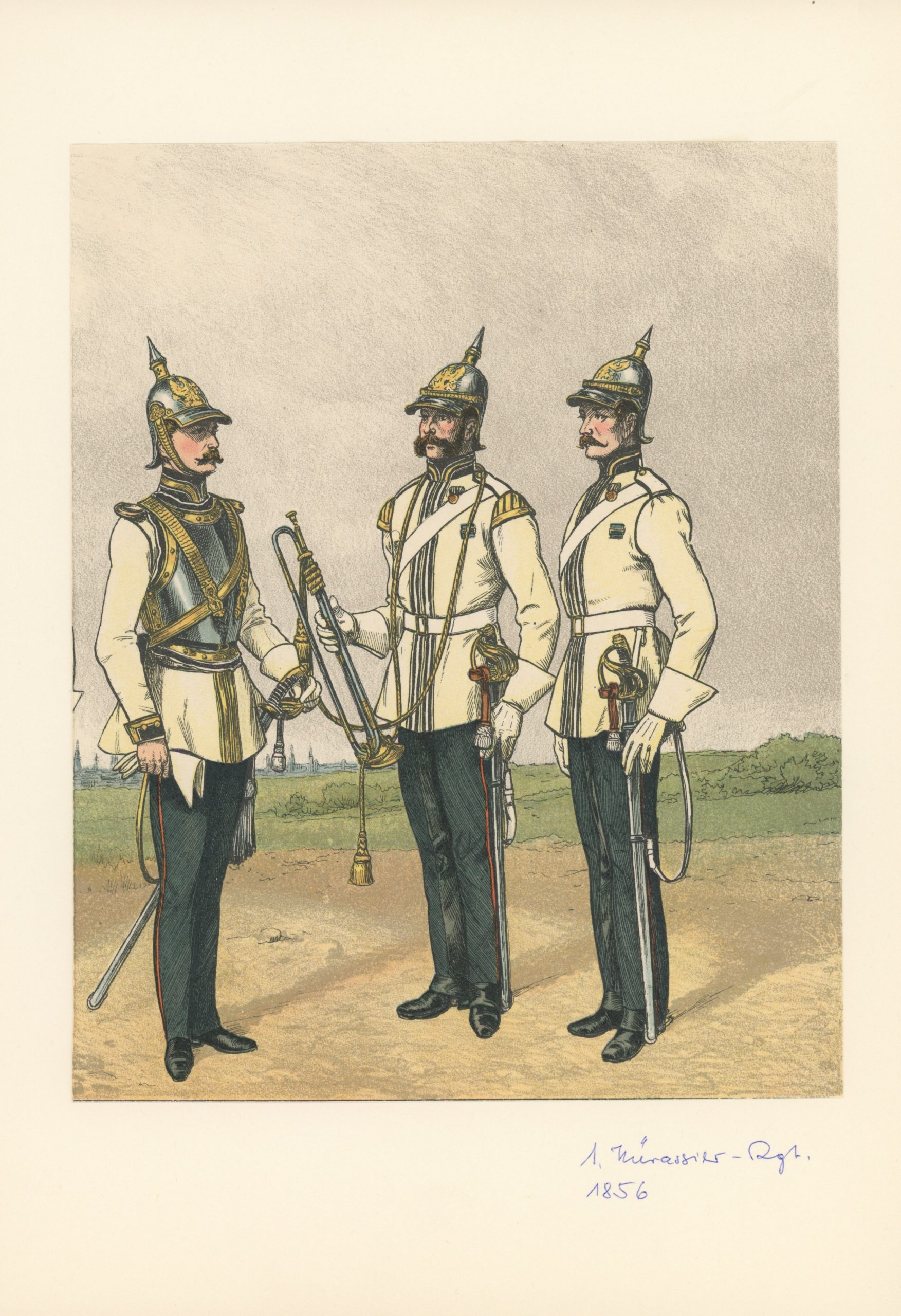 2 Planches Gravure – Illustration Richard Knötel – Cavalerie – Cuirassier Prussien – Kuirassier 1856 – Uniforme – Cuirassier