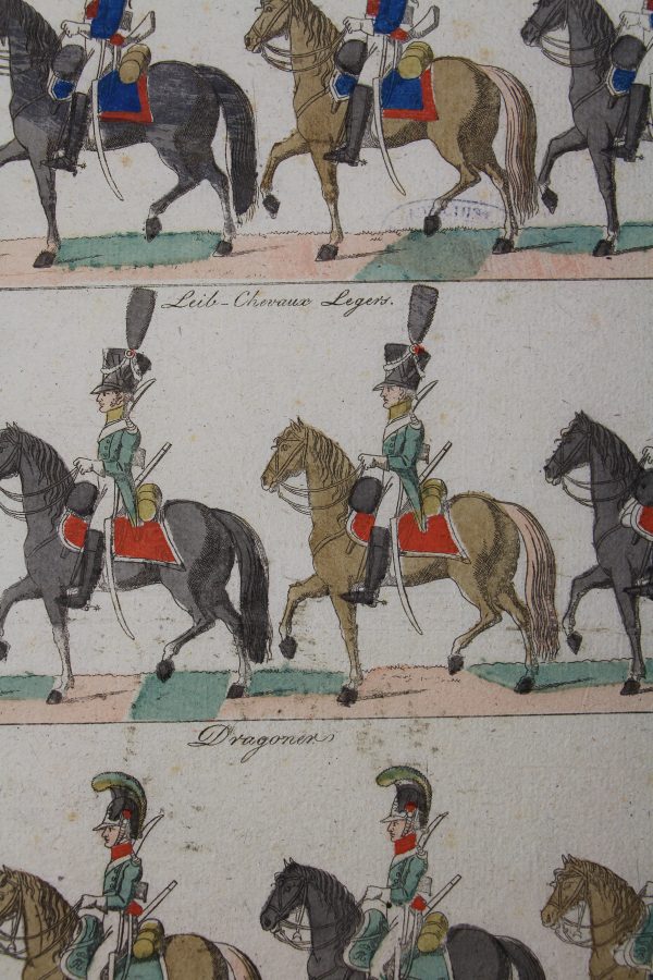 Petits soldats de papier – Feuille imagerie militaire – Ancienne gravure – Uniforme – Soldats allemands – Wurtemberg
