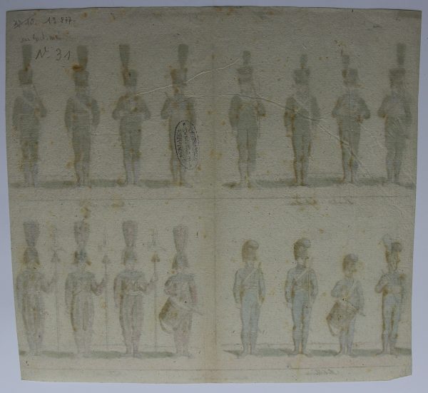 Petits soldats de papier – Feuille imagerie militaire – Ancienne gravure – Uniforme – Soldats allemands – Wurtemberg