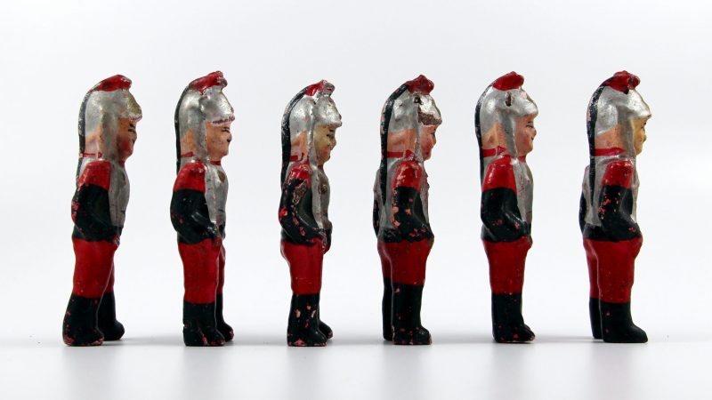 L’entreprise la plus connue qui les produisait est la “Fabrication parisienne de jouets en tous genres Georges Renault et Bon-Dufour” qui avait son siège au 80 rue des Vignoles à Paris (20e), active de 1890 à 1930. Elle a surtout fabriqué des militaires, mais aussi des sujets civils, confectionnés en sciure agglomérée recouverte de plâtre et de vernis coloré qui les rendaient attirants. Ils étaient présentés comme incassables. Ces petits soldats en plâtre peints sur pied étaient les cibles préférées des fusils à bouchon des enfants, aussi est-il rare aujourd’hui de les trouver intacts. Disponibles en plusieurs tailles, de 6 à 40 cm, ils étaient vêtus d’uniformes de la Belle Époque, jamais réactualisés : képis et pantalons couleur garance, dolman bleu ciel pour la cavalerie légère, ou tunique noire pour les dragons.”