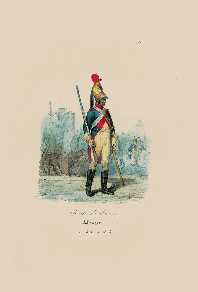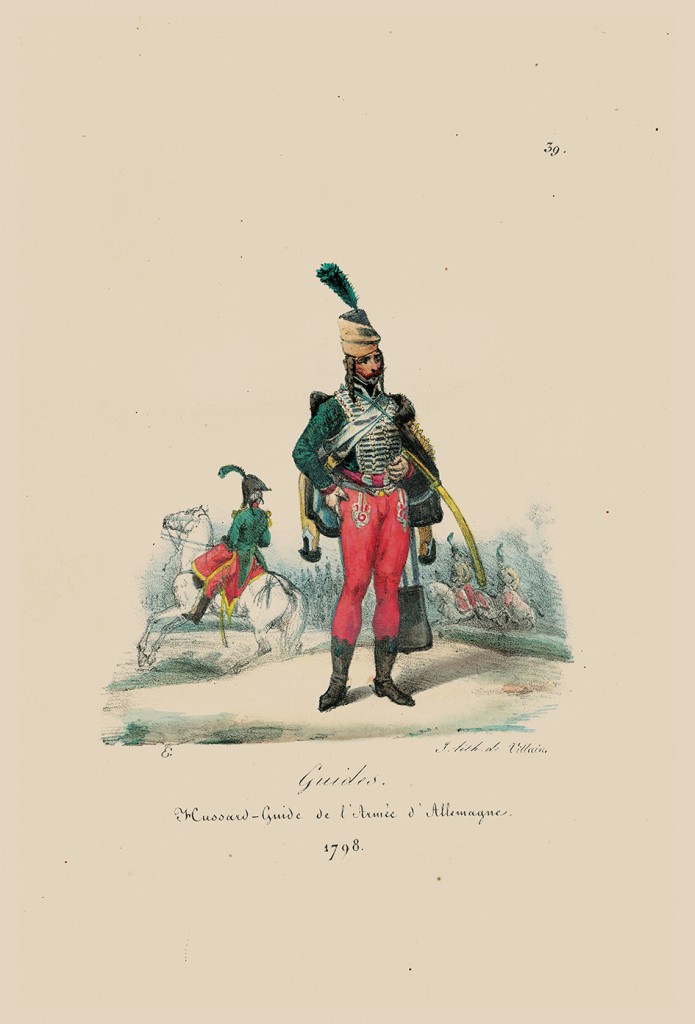 La collection des uniformes des armées françaises de 1791 à 1814, dessinée par Horace Vernet et Eugène Lami, a été publiée à Paris par Gide entre 1822 et 1823. Cette collection comprend des illustrations détaillées des uniformes militaires de cette période, offrant un aperçu visuel précieux de l’évolution des tenues militaires françaises pendant les guerres révolutionnaires et napoléoniennes.